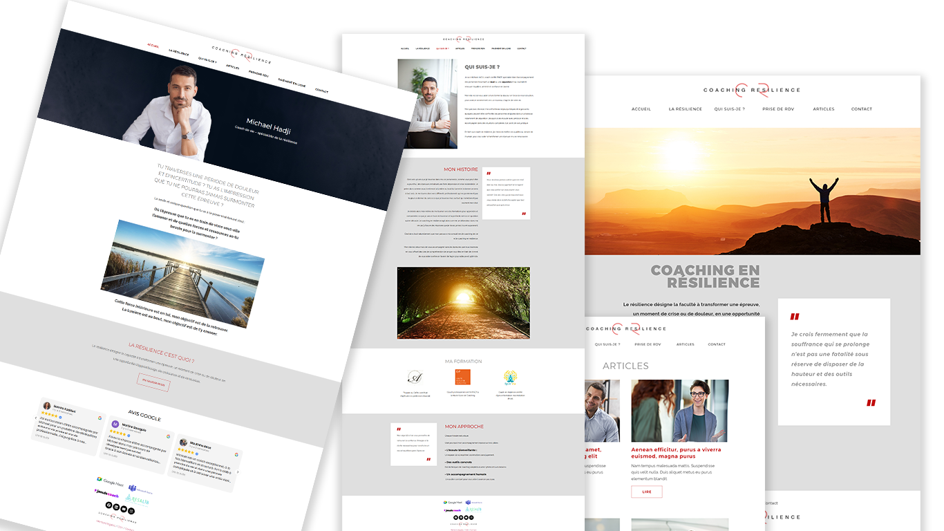 Maquettes web + création du site web pour un coach spécialisé dans la résilience.